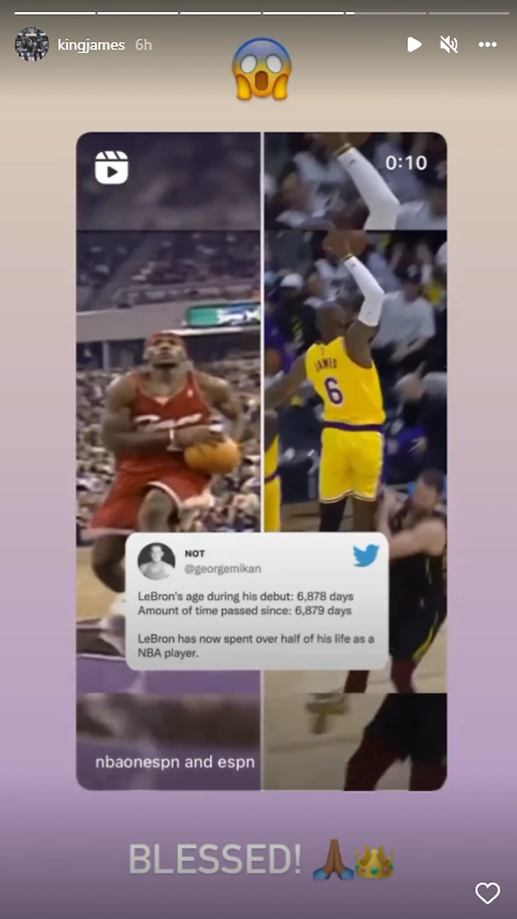 Леброн Джеймс отреагировал на новость о том, что он провел половину жизни в НБА