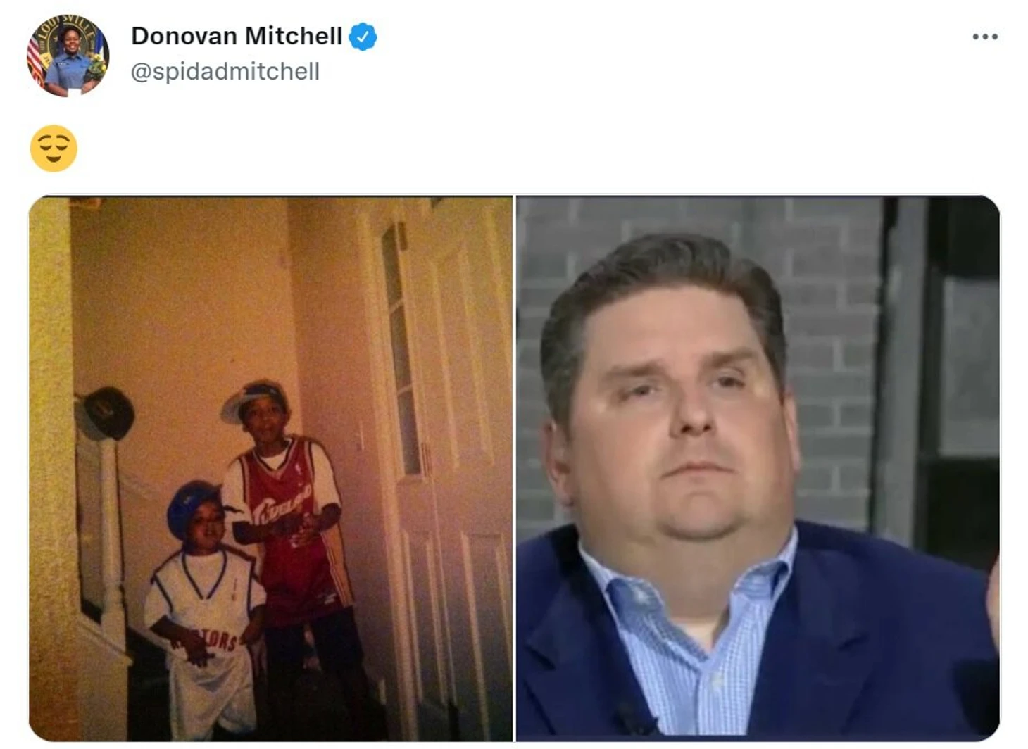 Митчелл отреагировал на трейд в твиттере. Звездный защитник выложил детскую фотографию в майке «Кавальерс», а также мем с журналистом ESPN Брайаном Уиндхорстом.