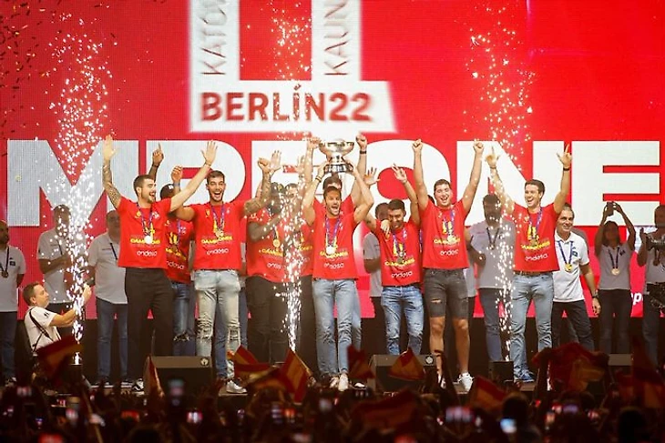 Сборная Испании отпраздновала победу на Евробаскете-2022 в Мадриде.