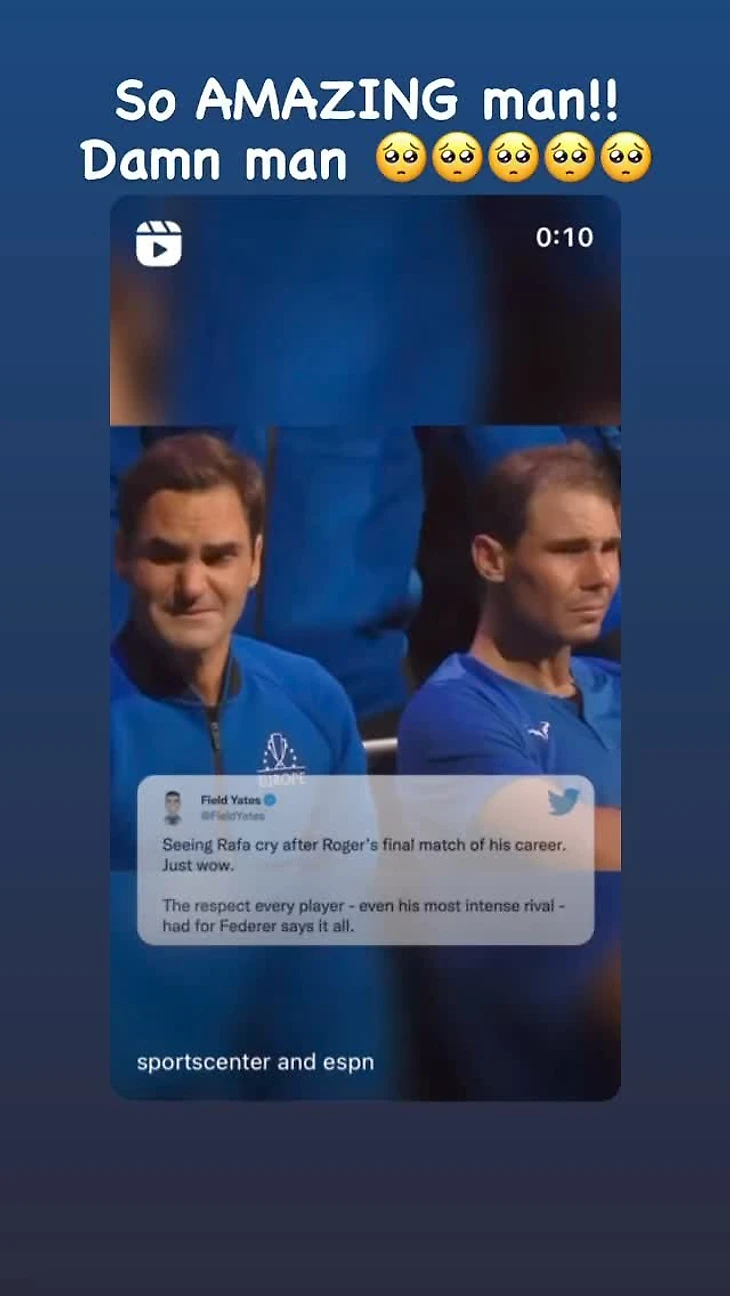 После игры зрители устроили Федереру овацию, которая длилась несколько минут. 20-кратный чемпион «Больших шлемов» в этот момент заплакал, испанский теннисист также не сдержал эмоций.