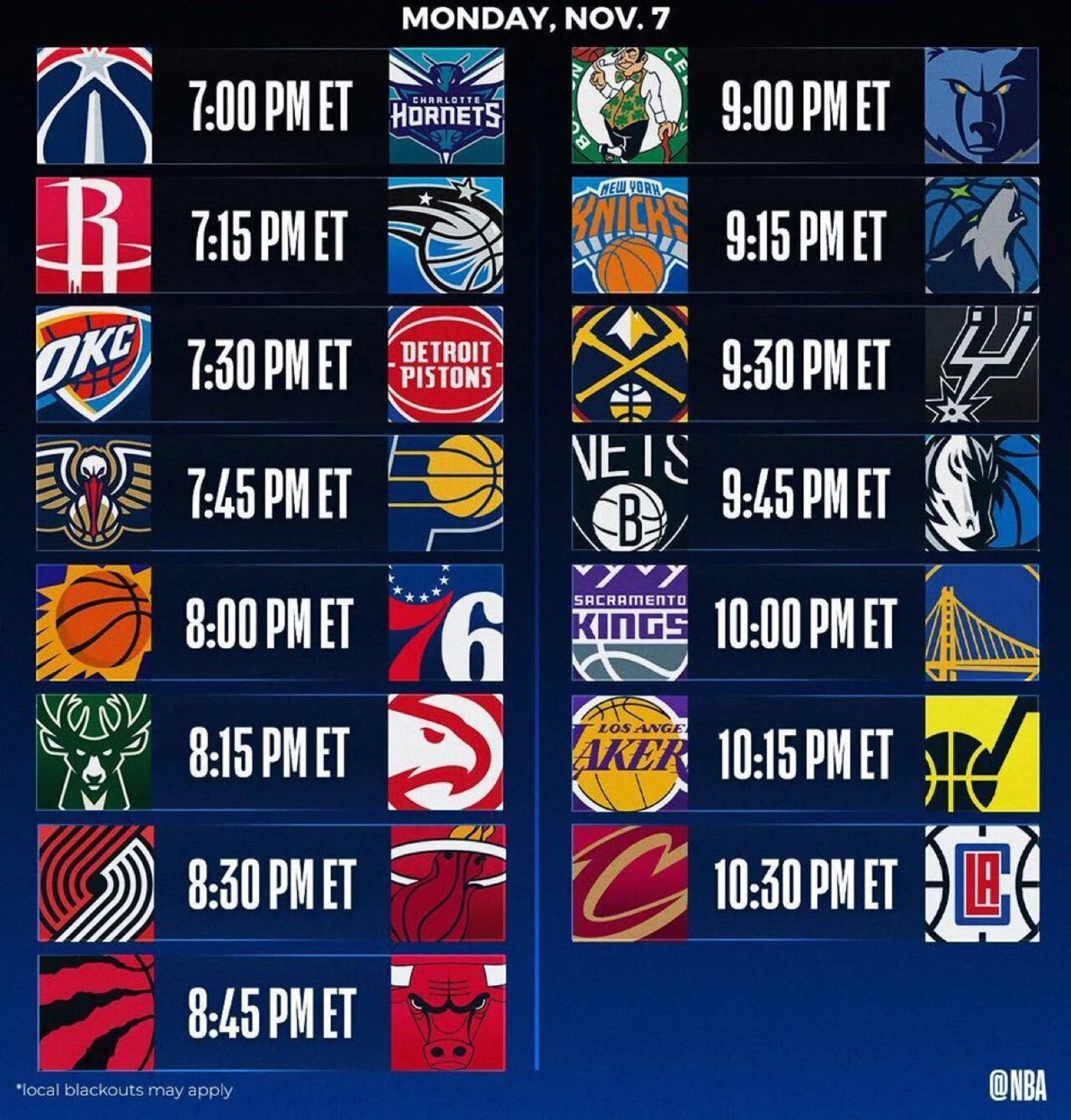 В понедельник, 7 ноября, в НБА состоится уникальный игровой день, в котором примут участие все 30 команд лиги.