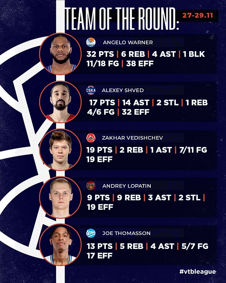 Уорнер, Швед, Ведищев, Лопатин и Томассон – в символической пятерке тура Лиги ВТБ