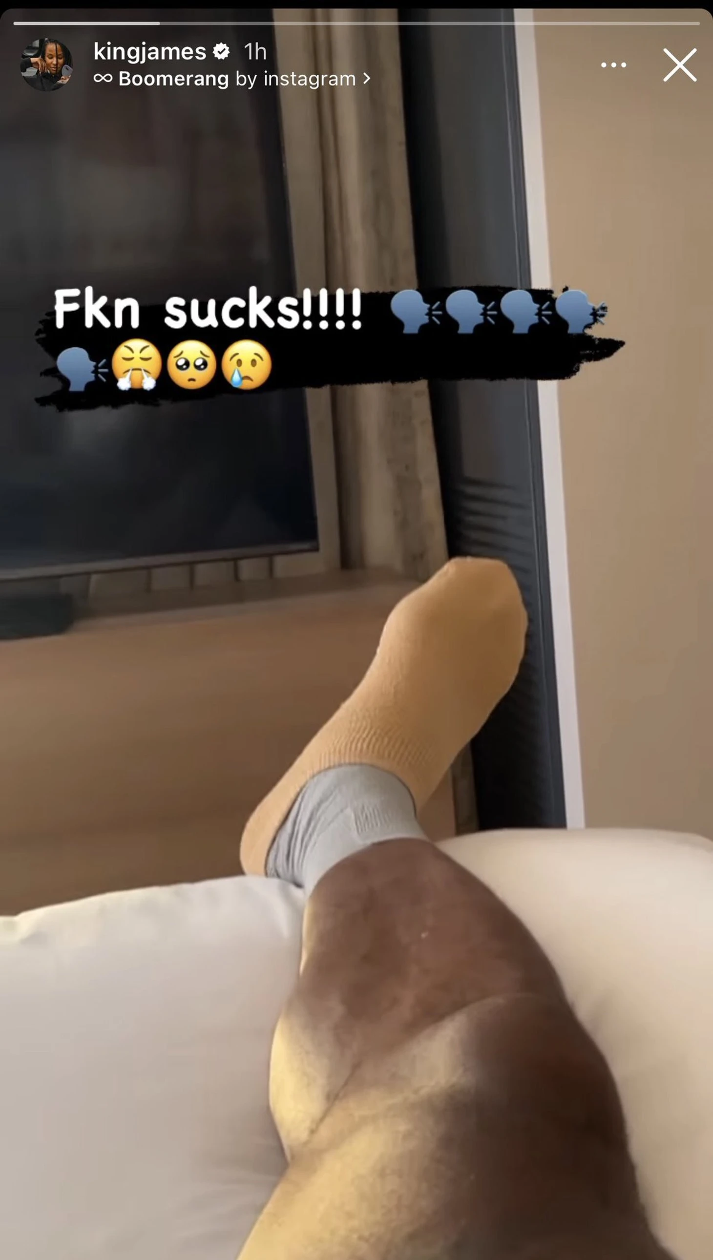 Джеймс выложил в социальных сетях фотографию поврежденной стопы с подписью «Полный отстой» и несколькими эмодзи.