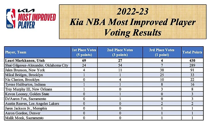 Лаури Маркканен стал самым прогрессирующим игроком сезона-22/23 в НБА