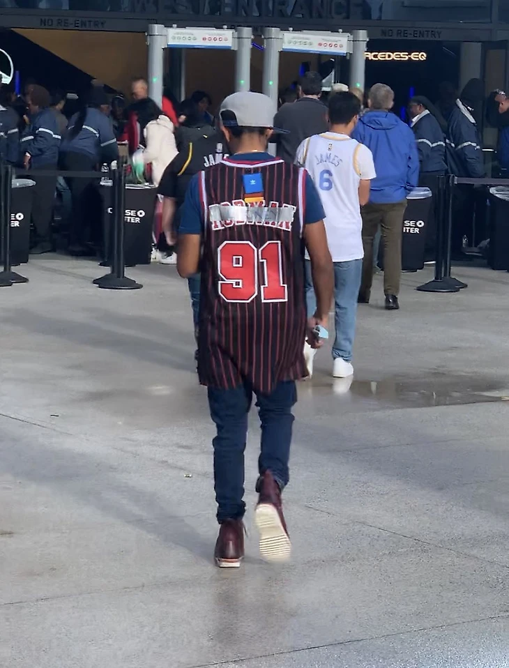 Болельщик «Голден Стэйт» пришел на первый матч с «Лейкерс» в майке легенды НБА Денниса Родмана, который зарекомендовал себя как один из лучших специалистов по подборам.