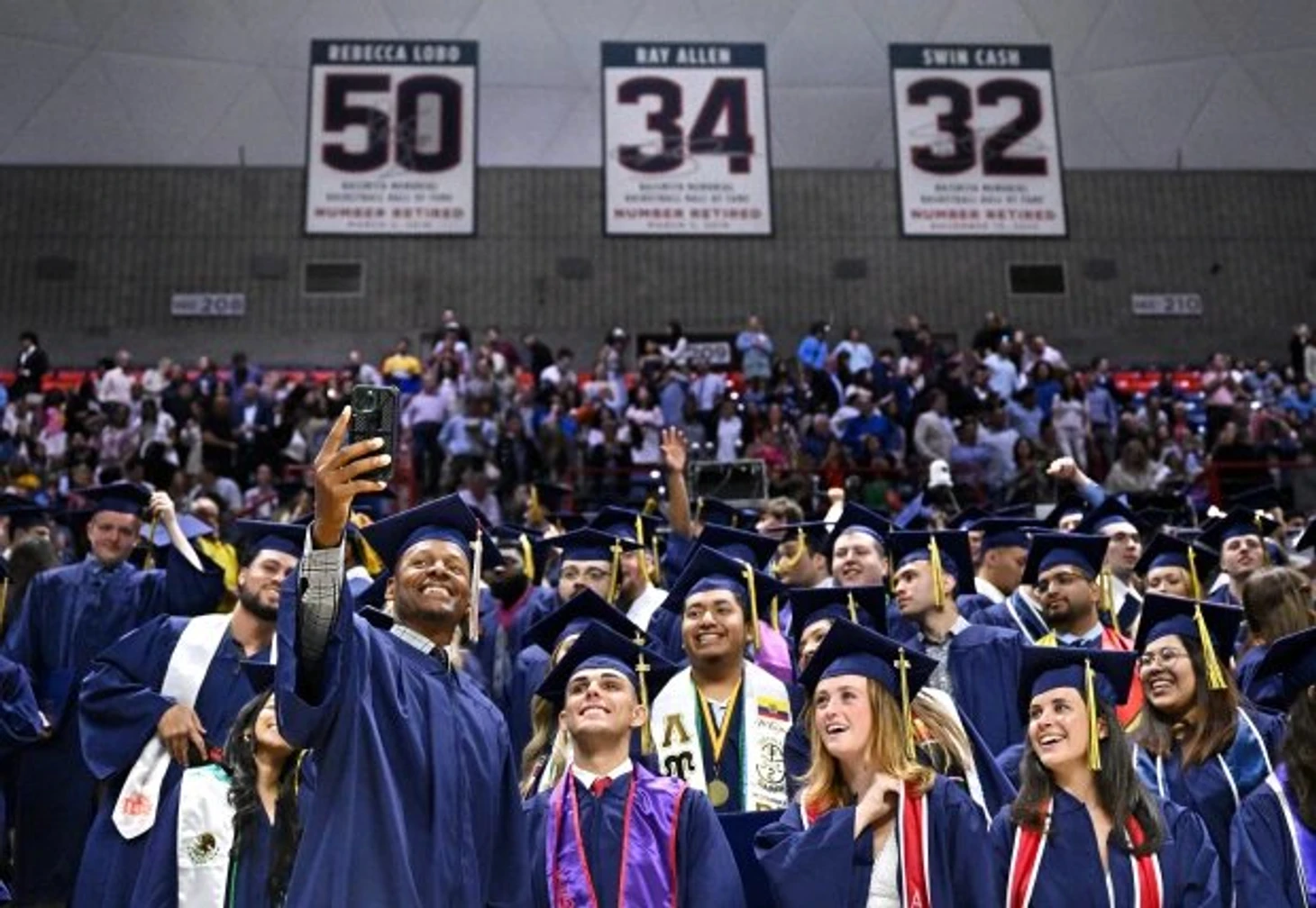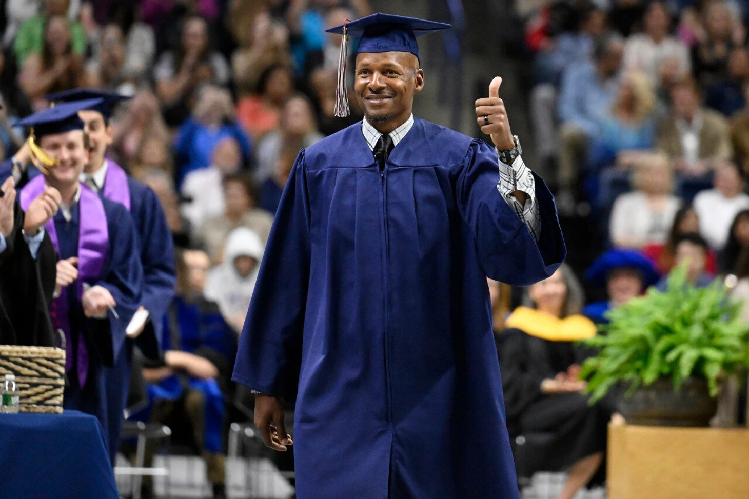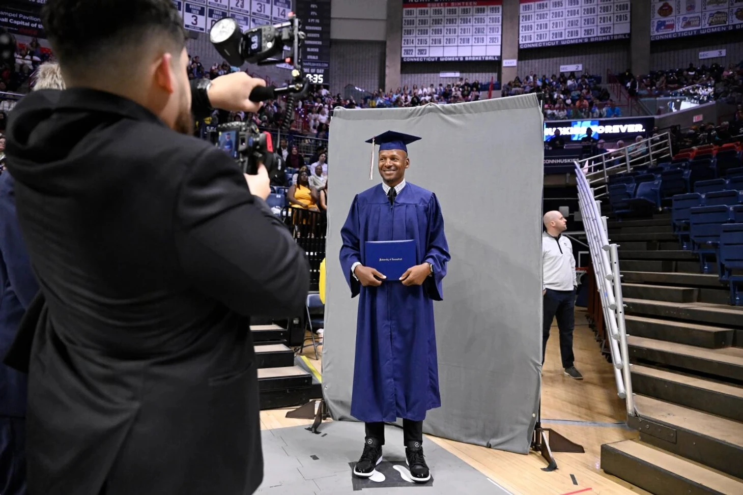Двукратный чемпион НБА и член Зала славы Рэй Аллен в воскресенье присутствовал на церемонии вручения дипломов в Университете Коннектикута.