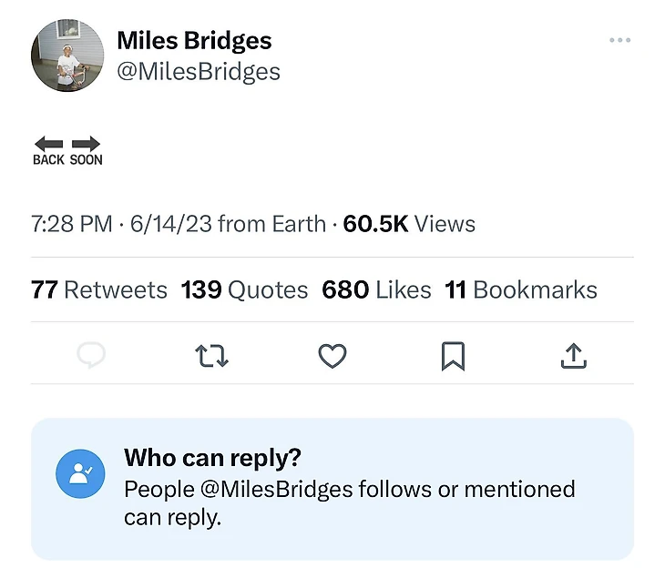 Майлз Бриджес намекнул в соцсети на возвращение в НБА