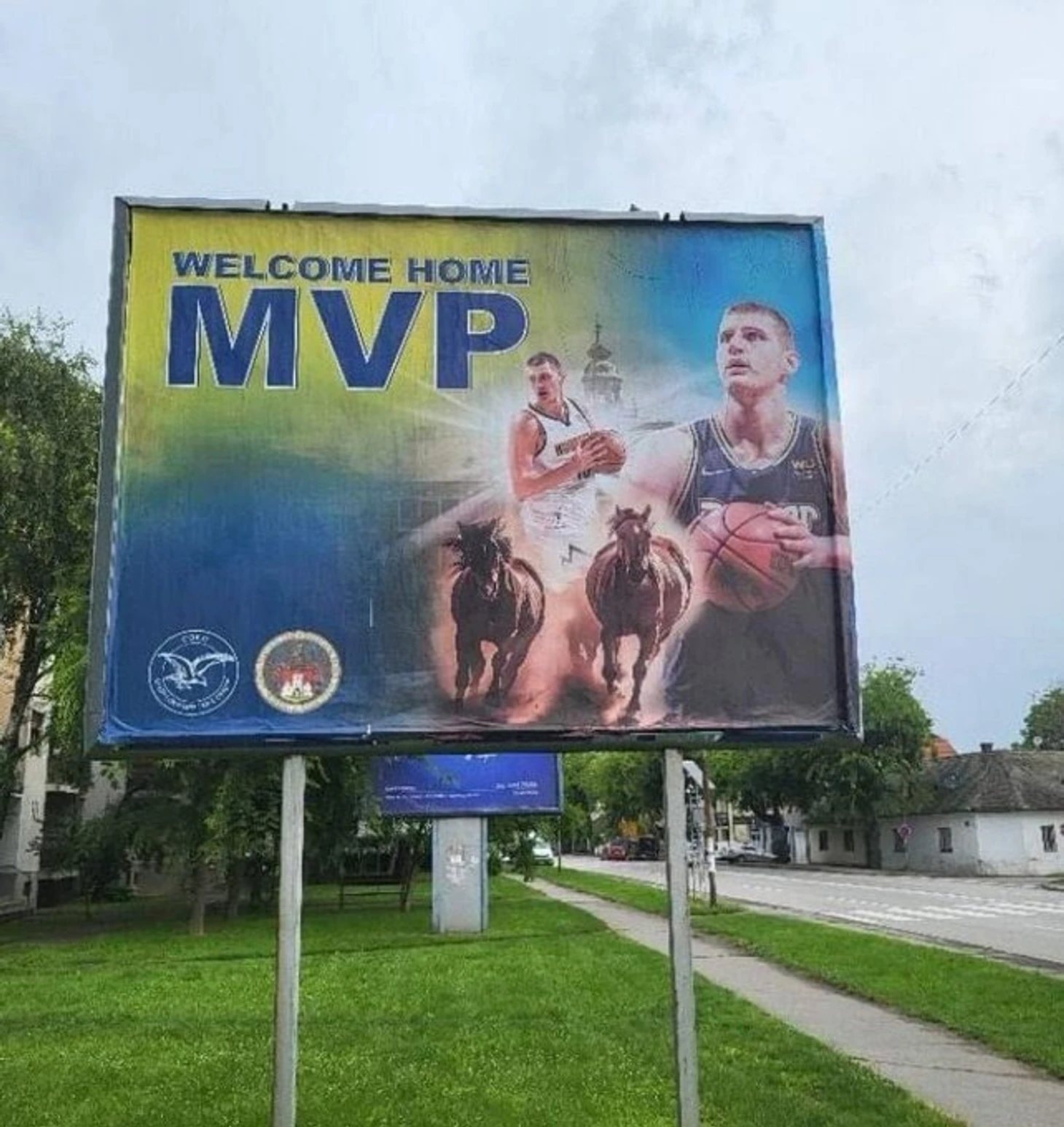 MVP финала НБА 2023 Николу Йокича («Денвер») встретили плакатом на рекламном щите в родном Сомборе, Сербия.