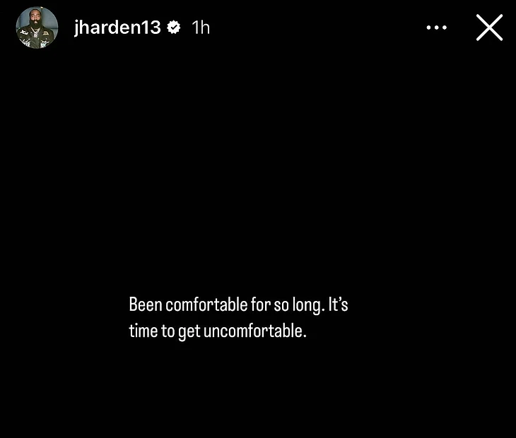 Джеймс Харден в соцсети: «Пора выйти из зоны комфорта»