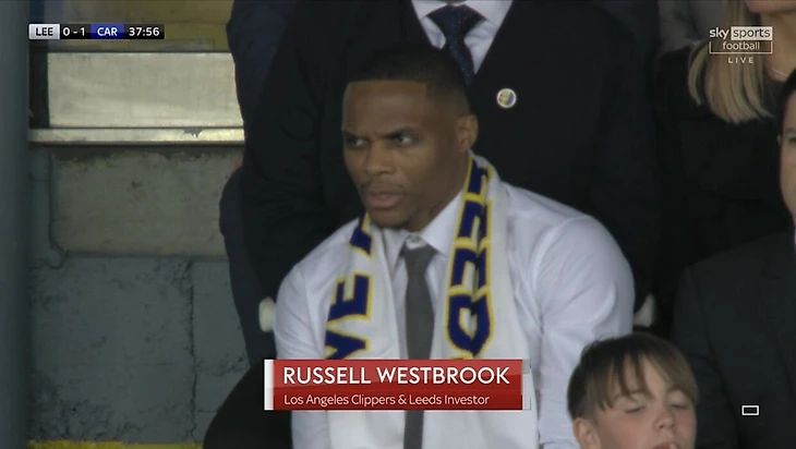 Звездный разыгрывающий «Клипперс» Расселл Уэстбрук побывал на сегодняшнем матче английского футбольного клуба «Лидс Юнайтед» против «Кардиффа» (2-2) в рамках Чемпионшипа.