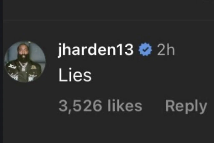 Разыгрывающий «Филадельфии» Джеймс Харден на своих страницах в соцсетях начал опровергать ранее появившиеся слухи.