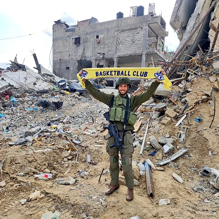 «Маккаби» опубликовал фото военного ЦАХАЛ с шарфом клуба на фоне разрушенного здания в Газе: «Удачи в сегодняшней игре»