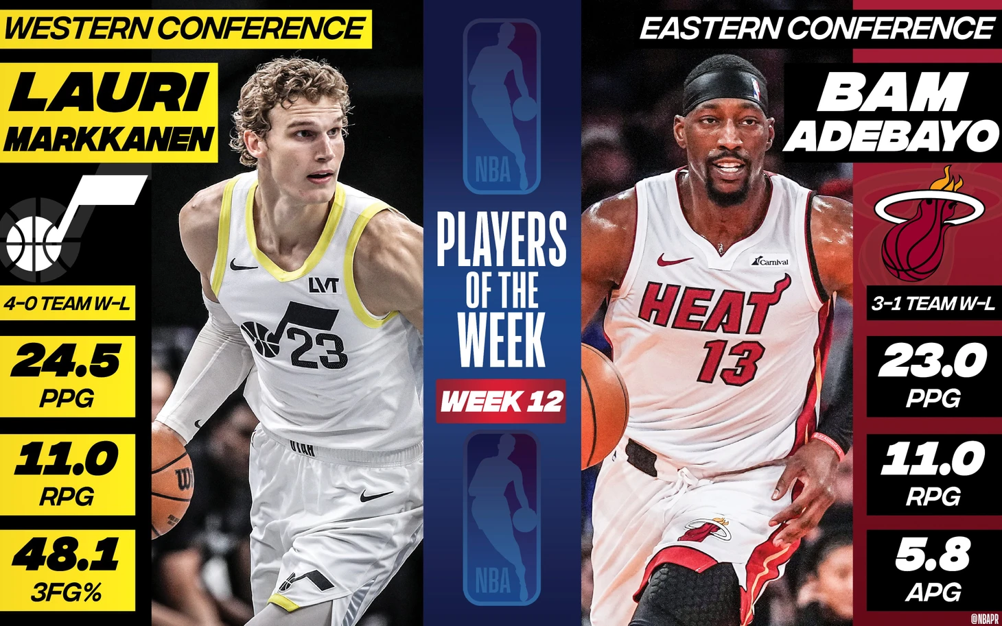 Лаури Маркканен и Бэм Адебайо – лучшие игроки 12-й недели НБА
