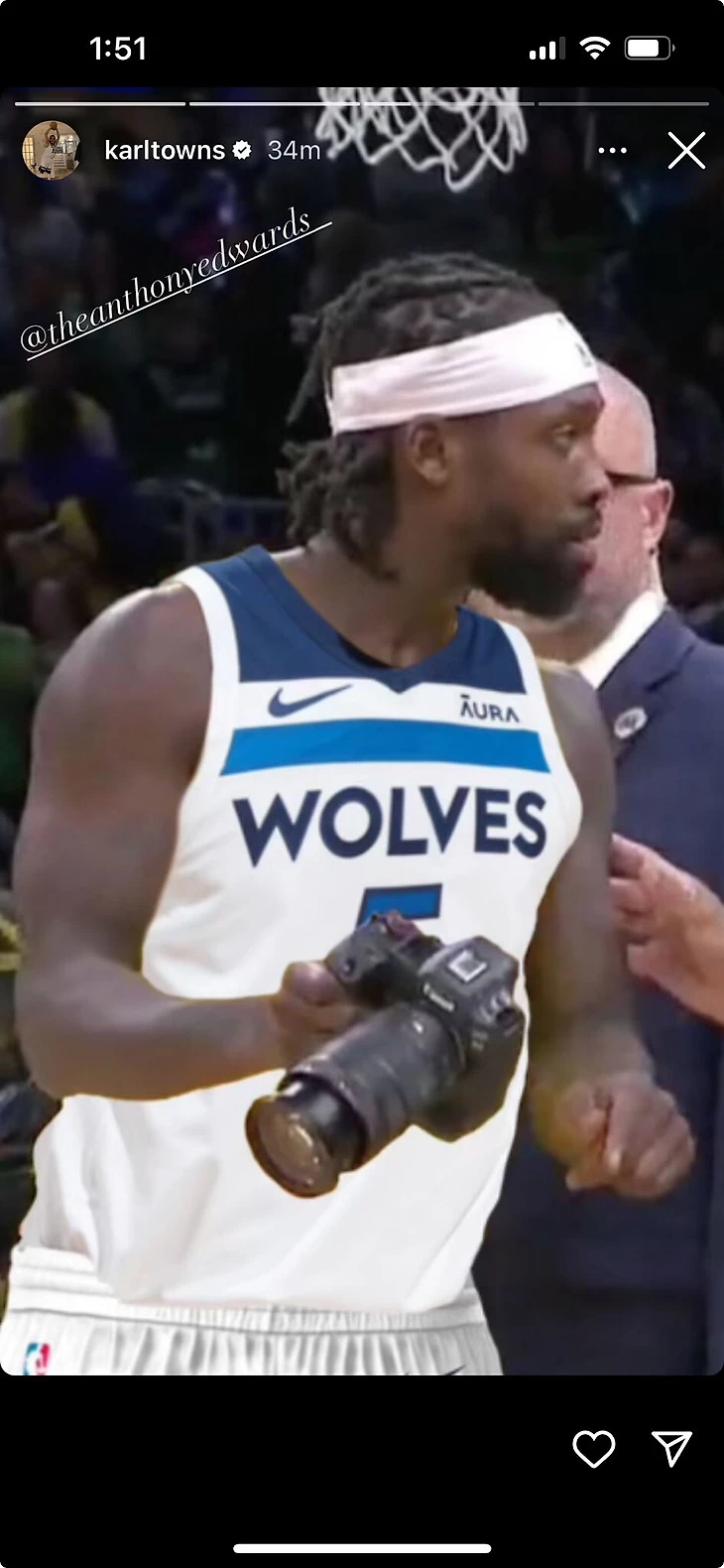 Таунс опубликовал в соцсети фотографию, на которой Патрик Беверли при помощи камеры пытается доказать судье, что тот не прав.