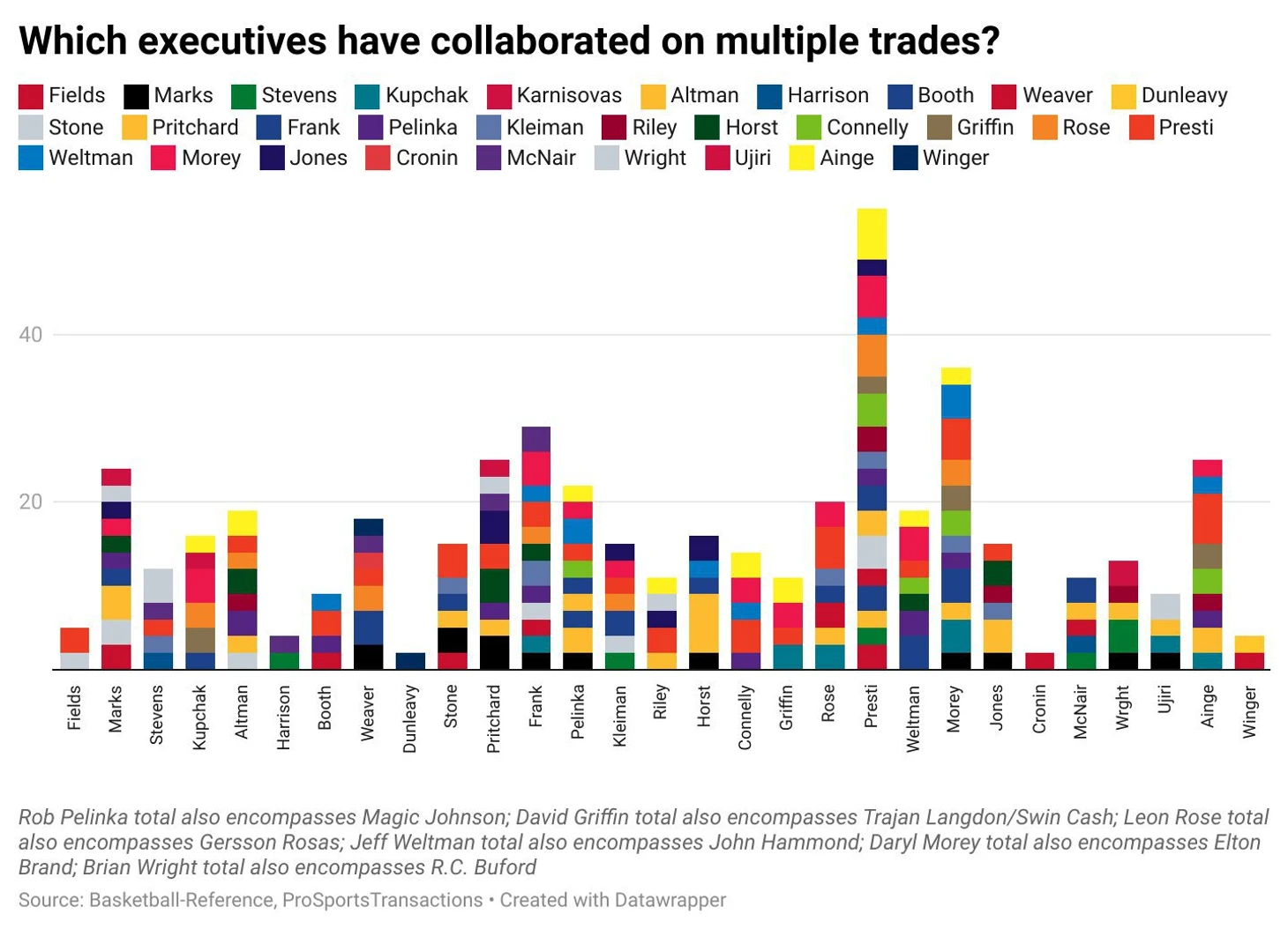 С 2010 года Прести заключил несколько сделок с 17 из 29 других действующих управленцев лиги – это лучший результат в НБА.