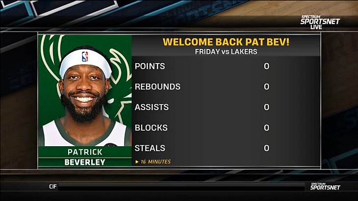 Защитник «Бакс» Патрик Беверли провел 16 минут на площадке и набрал 0 во всех статистических категориях, промазав три броска с игры.