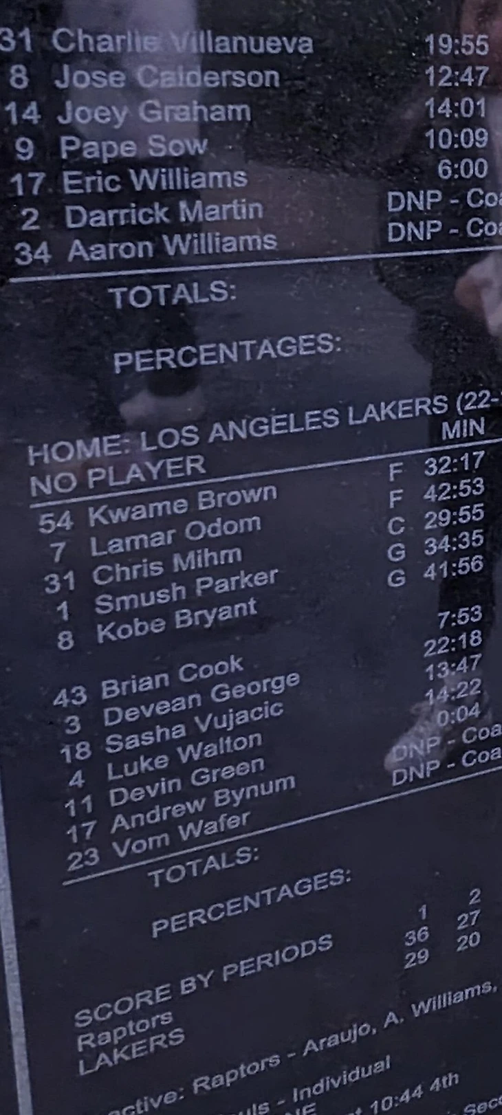 Выгравированный на постаменте статистический протокол знаменитой игры легендарного защитника с 81 очками против «Торонто» содержит три ошибки в написании слов.