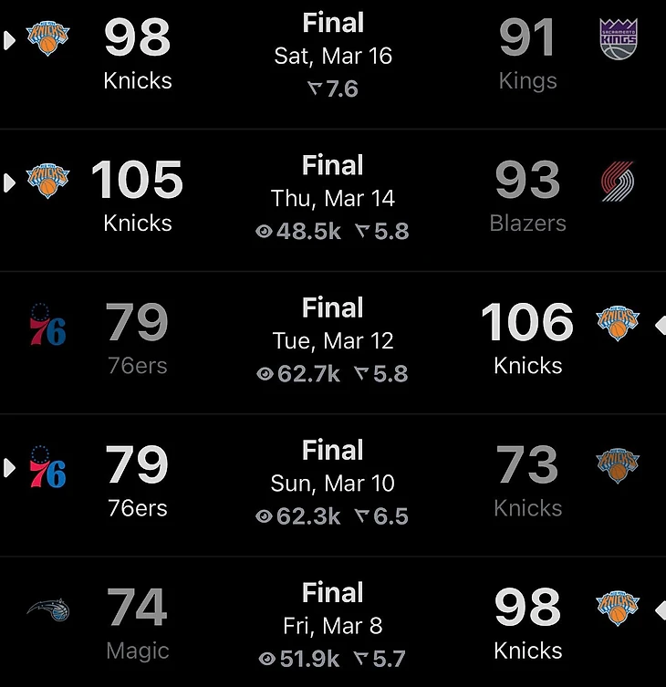 Благодаря защите «Нью-Йорк» выиграл четыре из последних пяти встреч и занимает четвертое место в Восточной конференции с показателями 40–27.