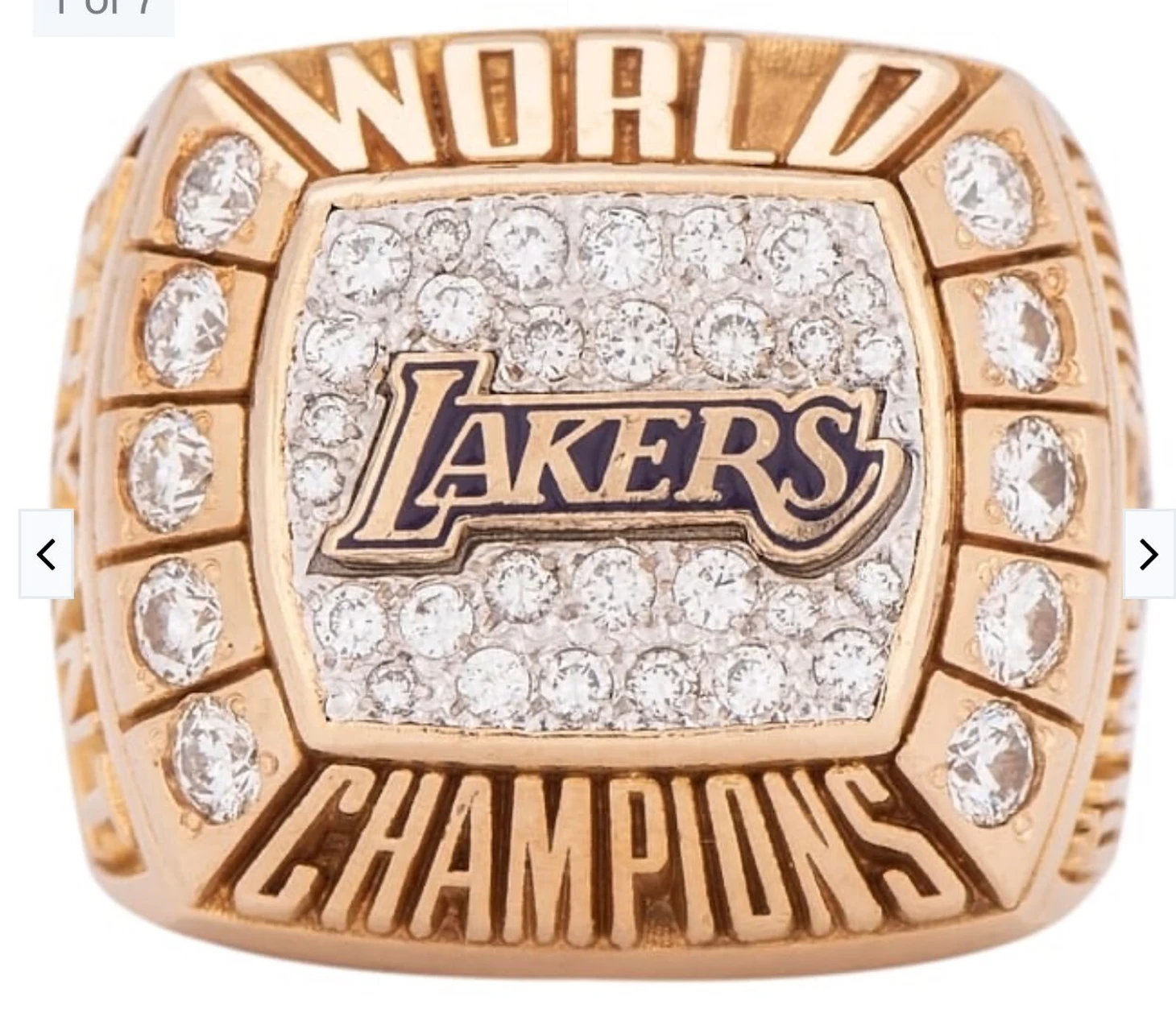 Копия перстня Кобе Брайанта за титул 2000 года, подаренная отцу, была продана за рекордные 927200 долларов