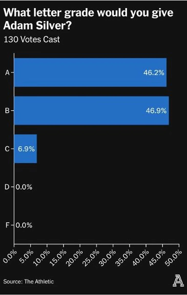 Адам Сильвер получил оценки «хорошо» и «отлично» в голосовании баскетболистов от издания The Athletic.