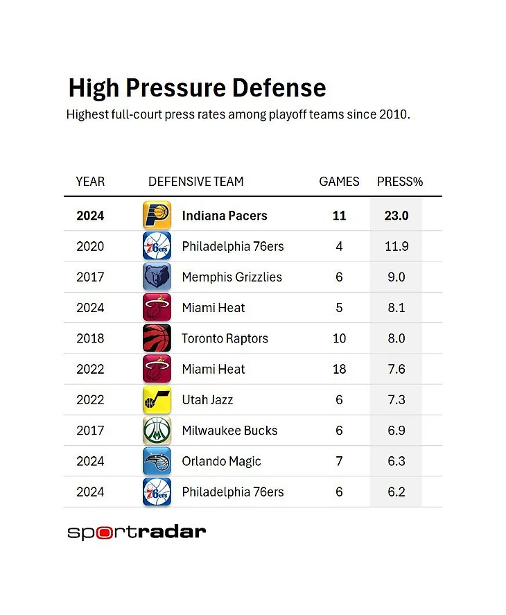«Пэйсерс» чаще других команд НБА за последние 15 лет играют в плей-офф прессинг по всей площадке.