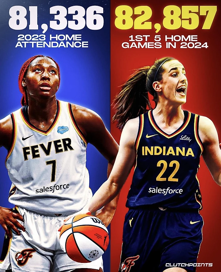 Первые пять домашних матчей команды Кейтлин Кларк посетило 82 857 человек. Суммарная посещаемость домашних игр «Индианы» в прошлом сезоне составила 81 336 человек.