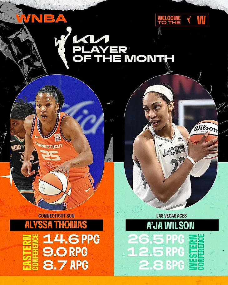 Лучшими игроками месяца в Восточной и Западной конференциях стали, соответственно, Алисса Томас («Коннектикут») и Айя Уилсон («Лас-Вегас»).