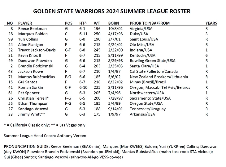 «Уорриорз» опубликовали состав команды на Летнюю лигу НБА.