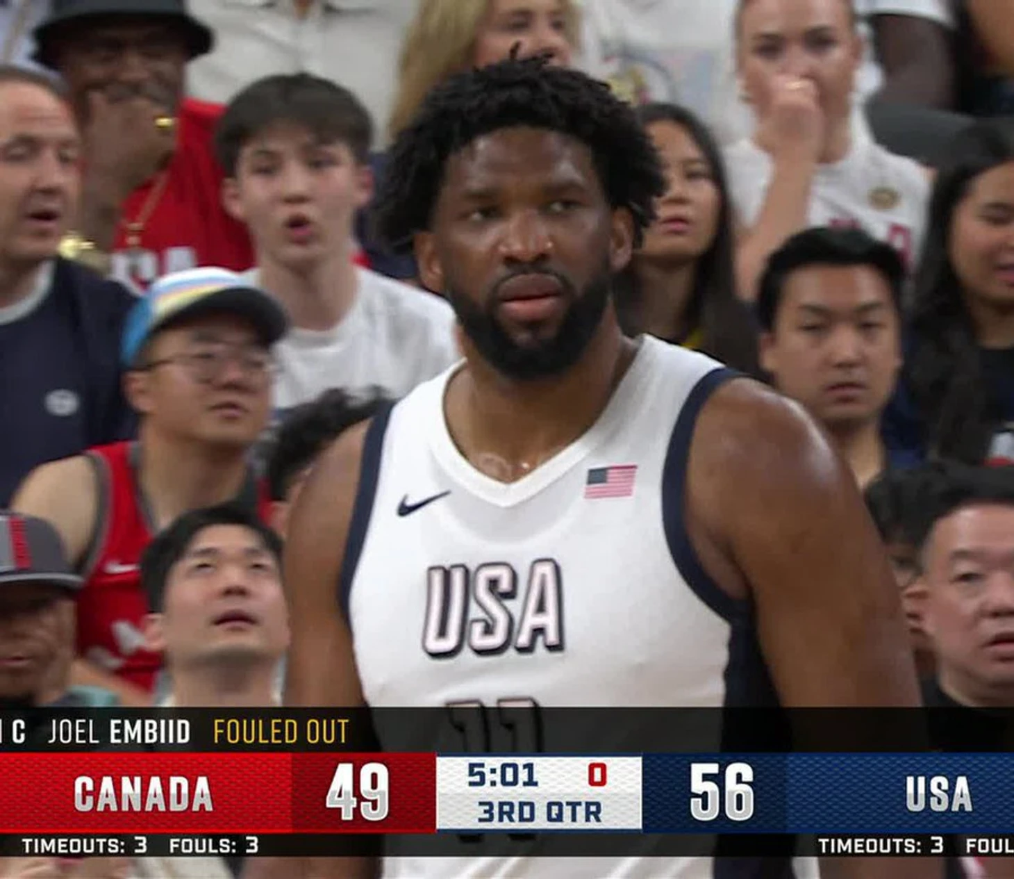 Джоэл Эмбиид был удален с перебором фолов всего за 12 минут в дебютном матче за США