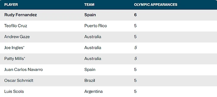 Руди Фернандес в 6-й раз принимает участие в Олимпийских играх. Это рекордный показатель в мужском баскетболе