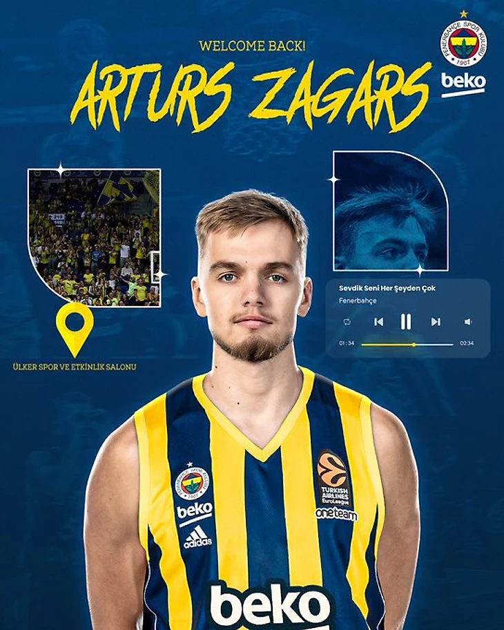 Защитник из Латвии (24 года, 190 см) провел прошлый сезон в аренде в литовских «Вулвз». Турецкий клуб объявил, что Жагарс возвращается из аренды и будет защищать цвета «Фенербахче» в сезоне-2024/25.