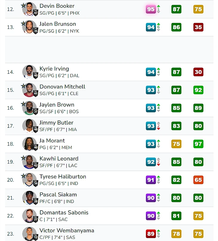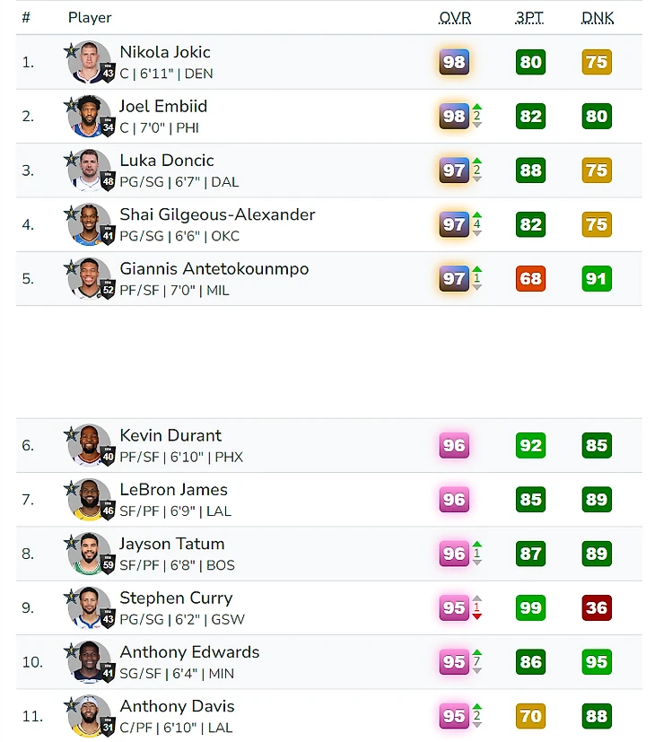 Три игрока имеют рейтинг 97: Лука Дончич, Шэй-Гилджес Александер и Яннис Адетокумбо.