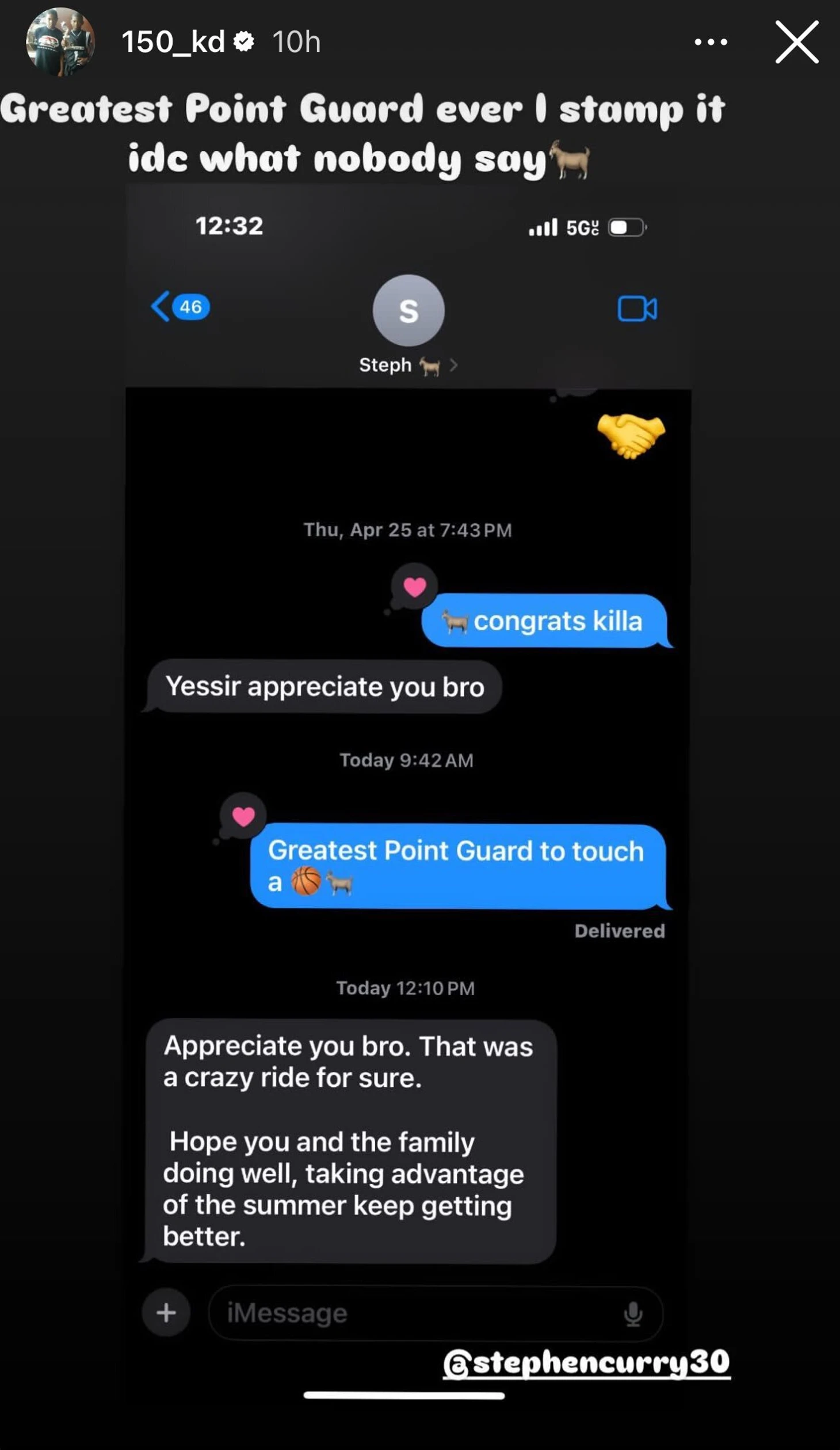 «Благодарю, бро. Это была сумасшедшая поездка, однозначно. Используй это лето, продолжай становиться лучше», – ответил Карри.