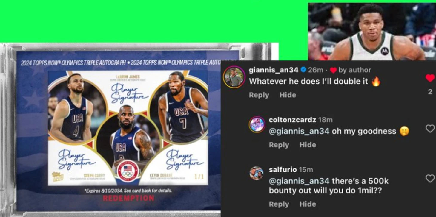 Яннис Адетокумбо готов заплатить крупную сумму за коллекционную карточку с Карри, Леброном и Дюрэнтом