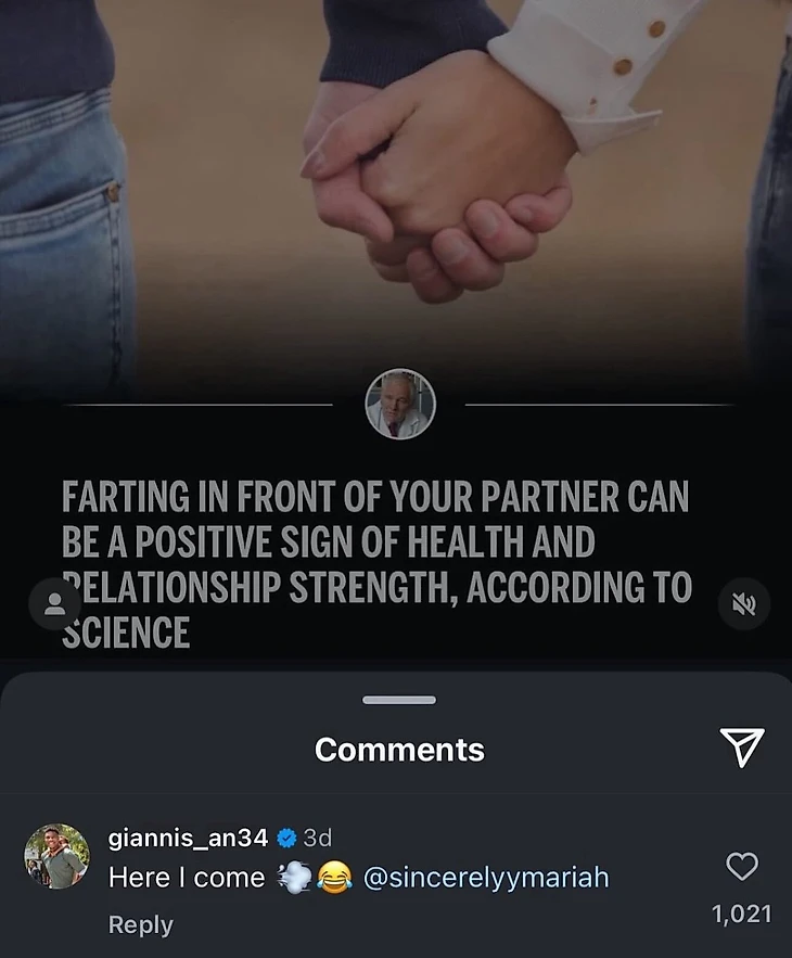 Яннис Адетокумбо поддержал мнение о том, что испускание газов в присутствии партнера является признаком прочности отношений