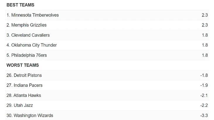 Сайт задействовал рейтинг BPI (Basketball Power Index), который показывает, на какой отметке выше или ниже среднего уровня находятся команды.