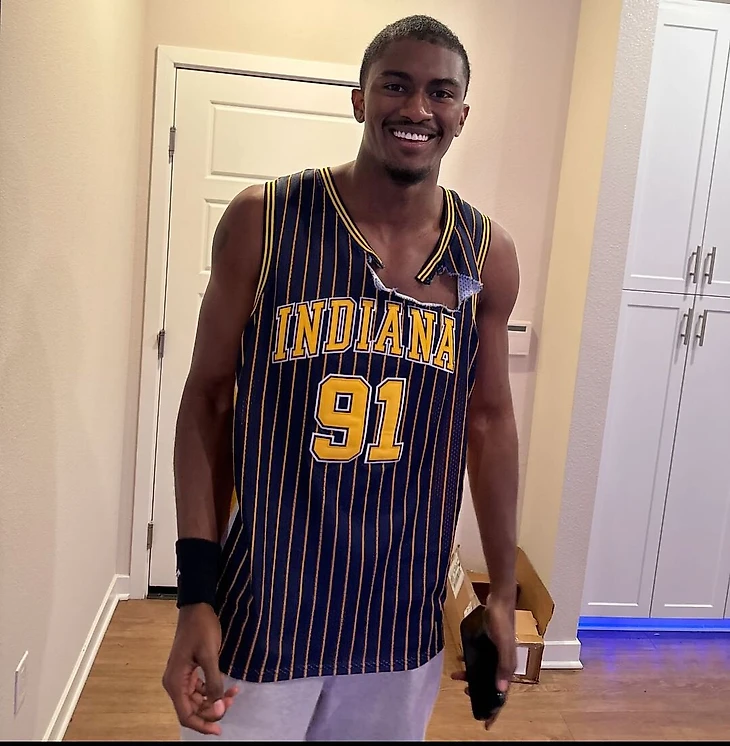 Рон Артест III надел порванную майку «Индианы», так же выглядел экс-форвард «Пэйсерс» после инцидента с участием игроков и болельщиков «Пистонс».