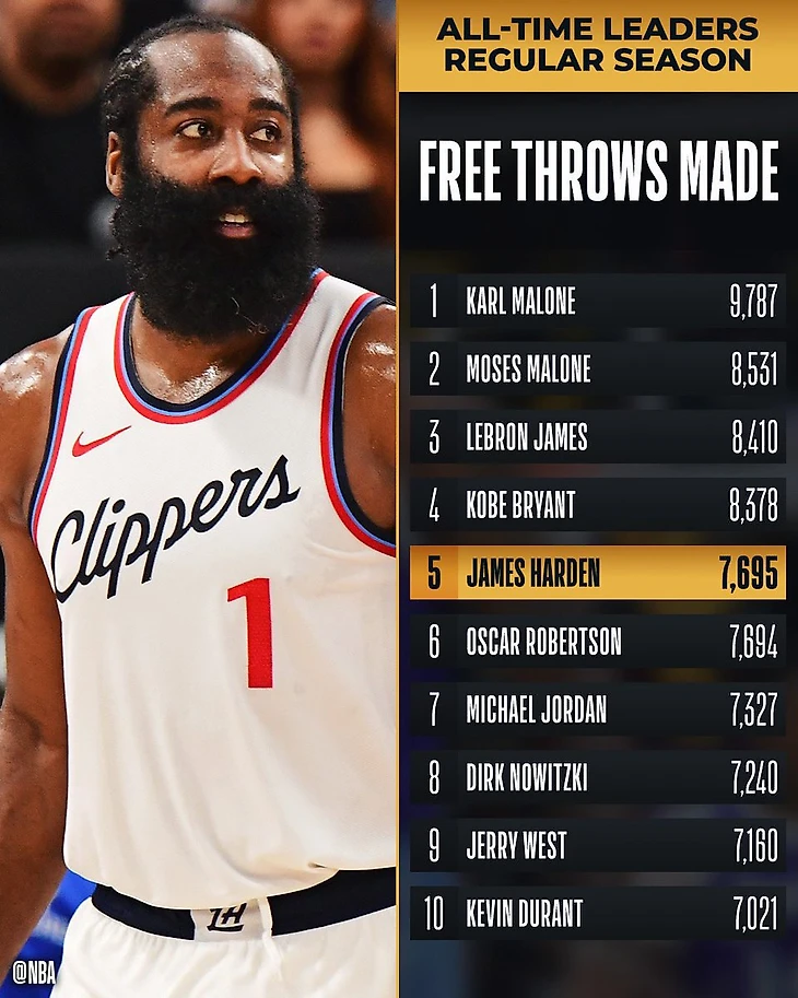 Джеймс Харден – один из самых продуктивных исполнителей штрафных в истории НБА.