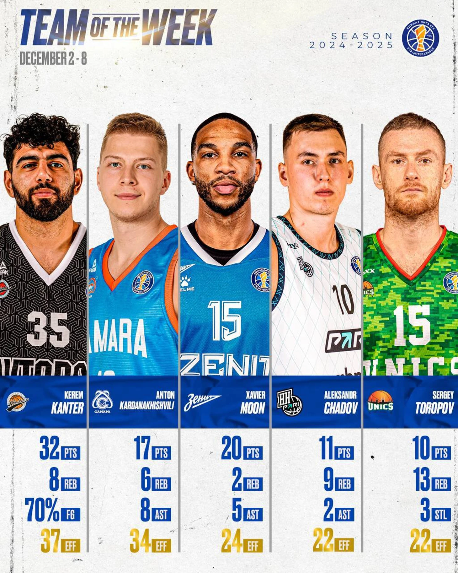 Карданахишвили, Чадов, Торопов, Кантер и Мун – в символической пятерке недели Лиги ВТБ