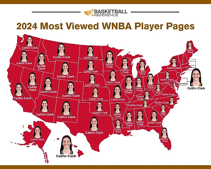Страница Кейтлин Кларк на Basketball Reference – самая просматриваемая во всех штатах США