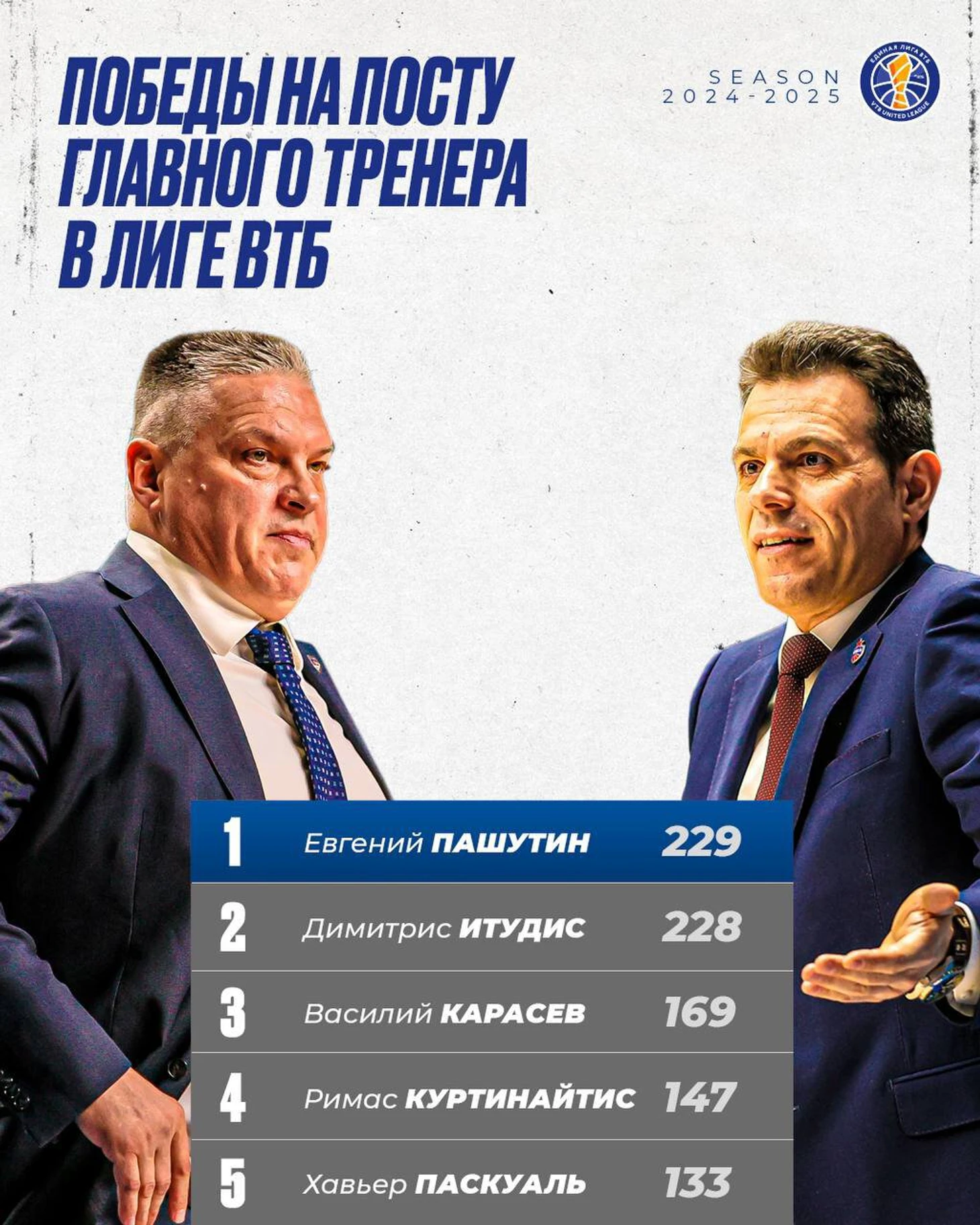 Евгений Пашутин обошел Димитриса Итудиса и поднялся на 1-е место по количеству побед в истории Лиги ВТБ