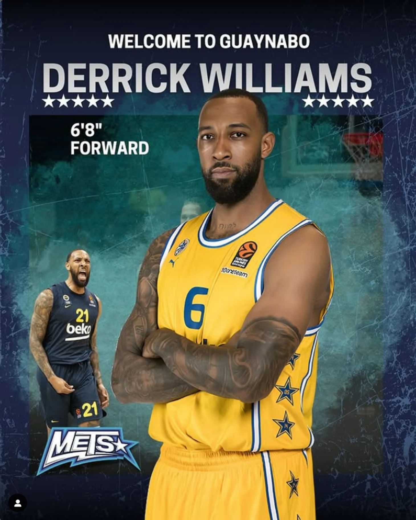 33-летний форвард Деррик Уильямс (203 см), выбранный под 2-м номером на драфте-2011 НБА, отыграл 7 сезонов в лиге (8,9 + 4 подбора в среднем) и выступал в Европе с 2018 по 2023 год, закончив в «Панатинаикосе» (12,4 очка и 3,9 подбора в 34 матчах Евролиги).