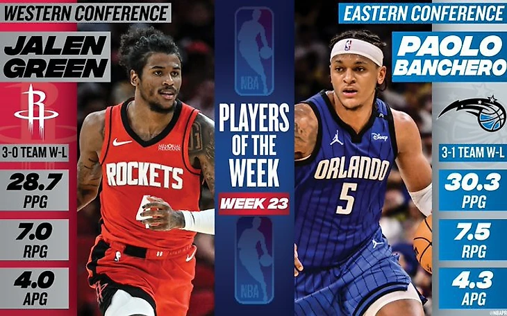 Ими стали защитник «Хьюстона» Джейлен Грин на Западе и форвард «Орландо» Паоло Банкеро на Востоке.