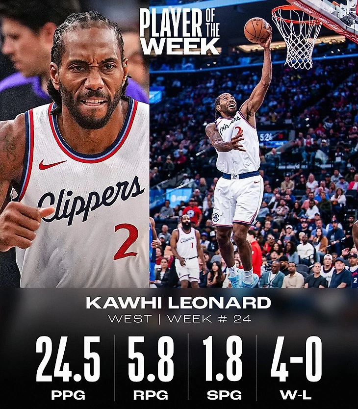 На счету Ленарда 24,5 очка, 5,8 подбора и 1,8 перехвата в среднем. «Клипперс» одержали 4 победы.