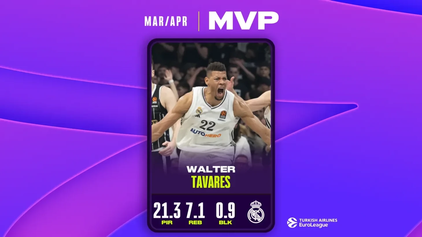 По итогам матчей марта и апреля самым ценным игроком был признан 33-летний центровой «Реала» Эди Тавареш.