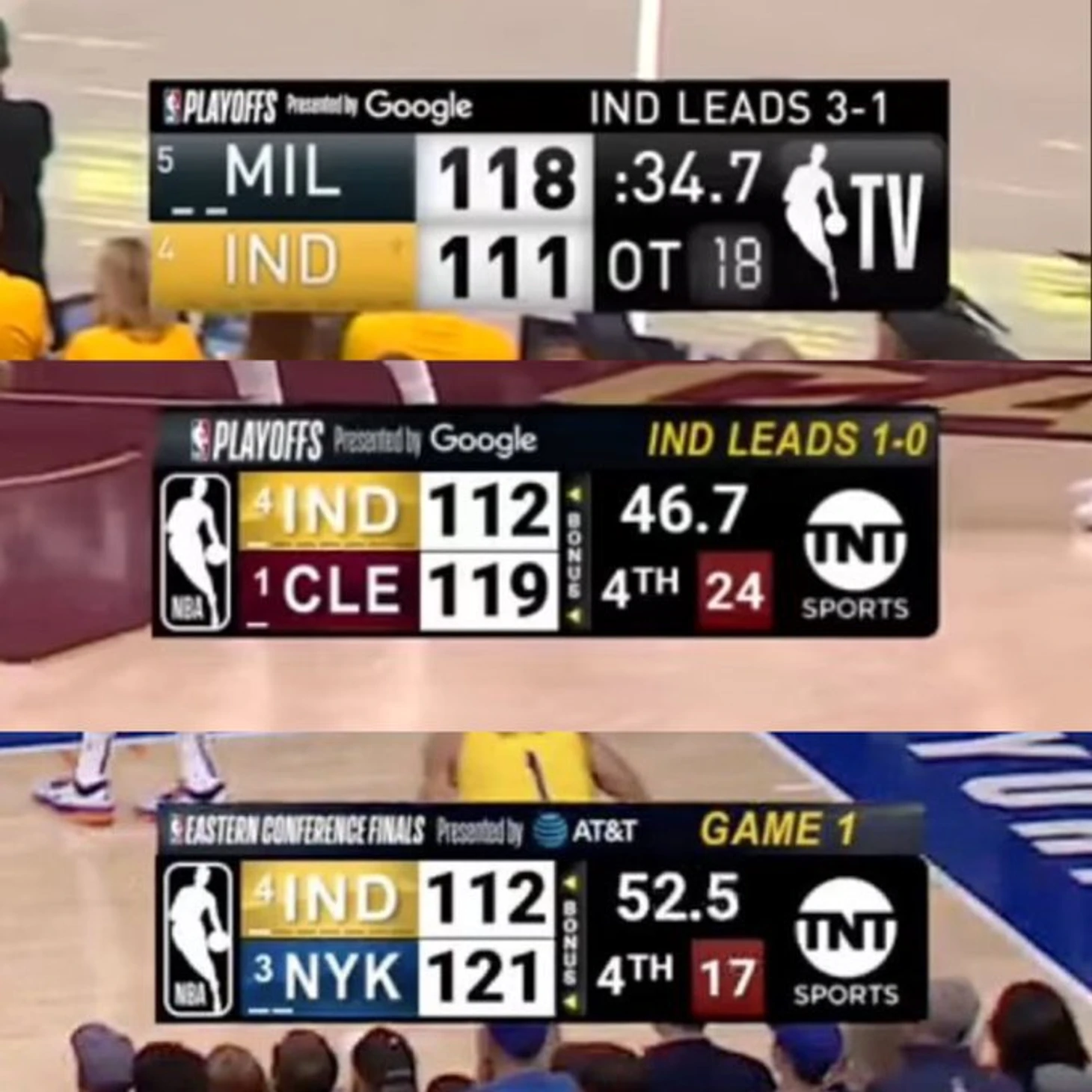 В 5-м матче серии первого раунда против «Индиана» обыграла «Милуоки», уступая со счетом 111:118 за 35 секунд до конца овертайма. Во 2-м матче серии второго раунда «Пэйсерс» выиграли у «Кливленда», несмотря на счет 112:119 за 47 секунд до конца.