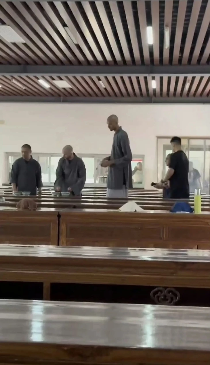 Центровой «Сан-Антонио» побрился налысо во время посещения монахов в Шаолиньском монастыре. В сети появились фотографии, на которых француз одет в монашескую одежду и обедает с монахами.