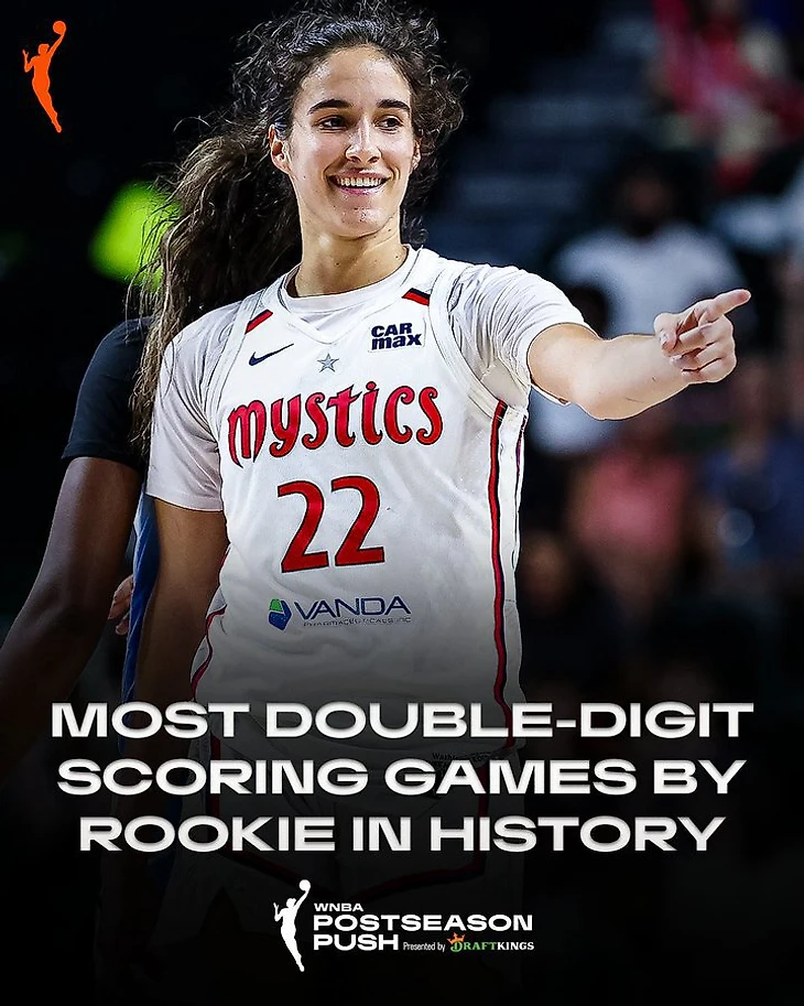 21-летняя защитница 36-й раз за сезон набрала 10+ очков, тем самым побив рекорд Кейтлин Кларк по количеству игр с двузначным количеством очков среди новичков.