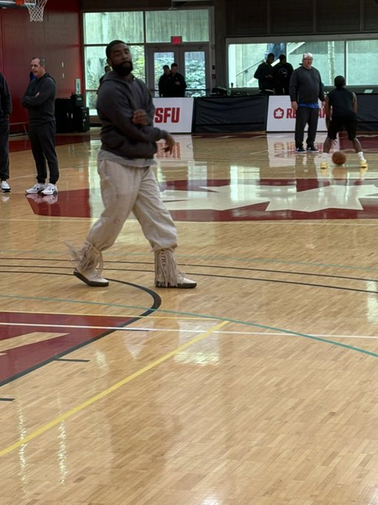 Во время занятия баскетболист щеголял в белых мокасинах, выполненных в ковбойском стиле.