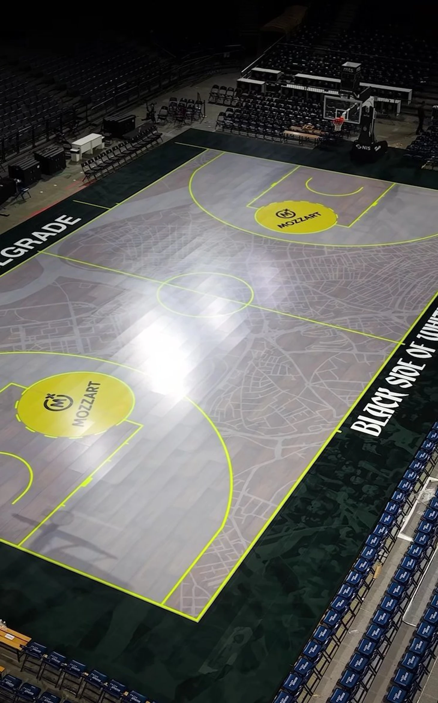 На паркете теперь изображена карта города, что подчеркивет связь команды с Белградом.